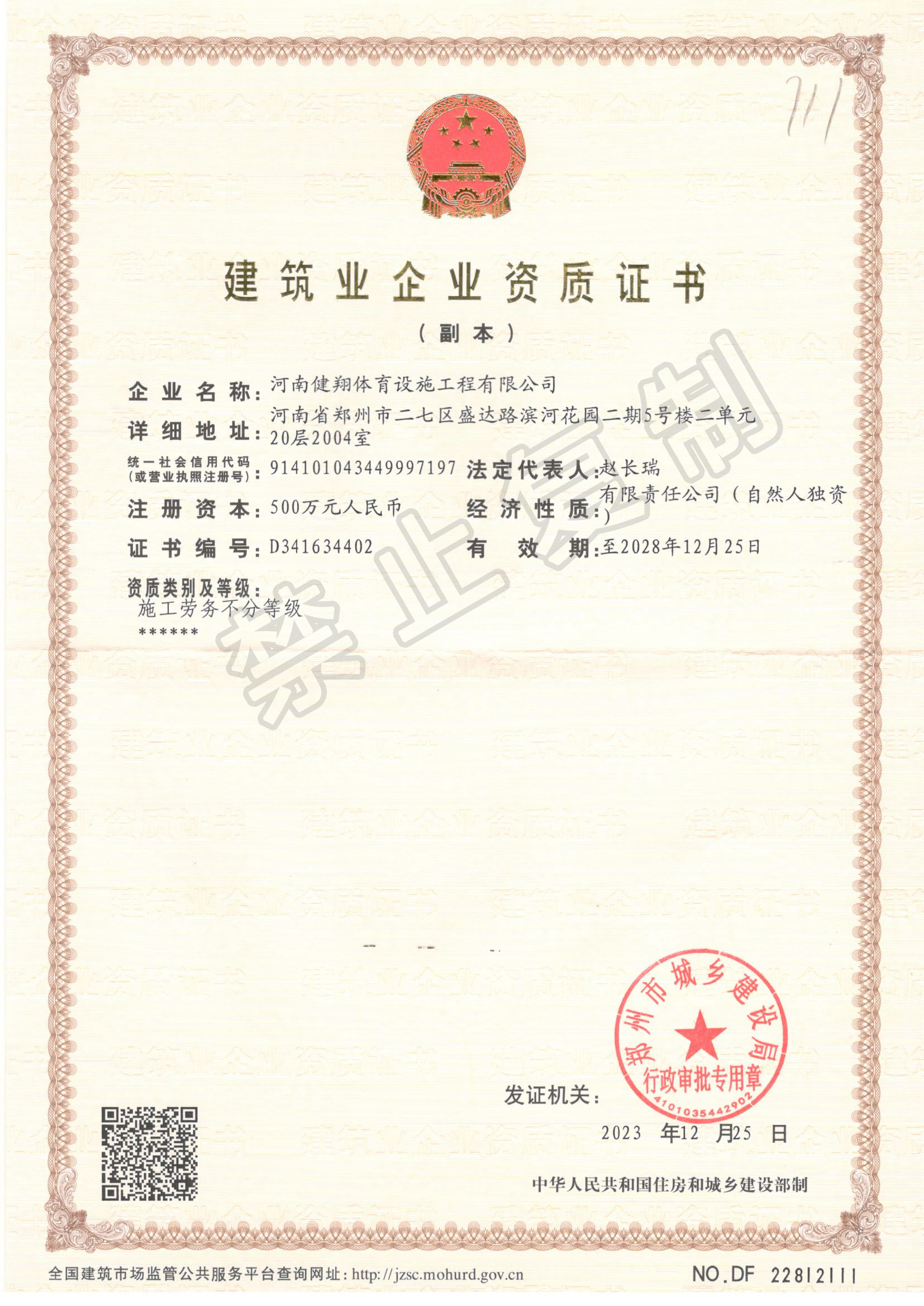 河南健翔體育設(shè)施工程有限公司是一家集生產(chǎn)、銷售、咨詢、設(shè)計、施工、維護(hù)于一體的專業(yè)體育運(yùn)動場地施工工程有限公司,我們將“優(yōu)質(zhì)、高效、誠信、發(fā)展”作為公司一貫的經(jīng)營理念。自公司成立以來,本著“誠信經(jīng)營、客戶 ”的經(jīng)營態(tài)度,以客戶為中心的經(jīng)營思想,博得行業(yè)的贊譽(yù),以及客戶的信賴。公司擁有一整套實(shí)用的獨(dú)特施工技術(shù)及施工設(shè)備、一批經(jīng)驗(yàn)豐富的專業(yè)施工團(tuán)隊,在全國各地承攬的施工工程中多項(xiàng)通過中國田徑協(xié)會驗(yàn)收、深得用戶好評和信賴,并取得了良好的社會效益!公司主要業(yè)務(wù)有:塑膠跑道工程、PVC塑膠地板工程、環(huán)氧樹脂地坪工程、幼兒園場地工程、體育器械設(shè)施工程、人造草坪工程、地板工程、硅PU球場工程、丙烯酸球場工程、圍網(wǎng)燈光工程等系列的體育場地及器材安裝和貿(mào)易等,為客戶提供新穎、優(yōu)質(zhì)、舒適的運(yùn)動場地…… >>查看詳情